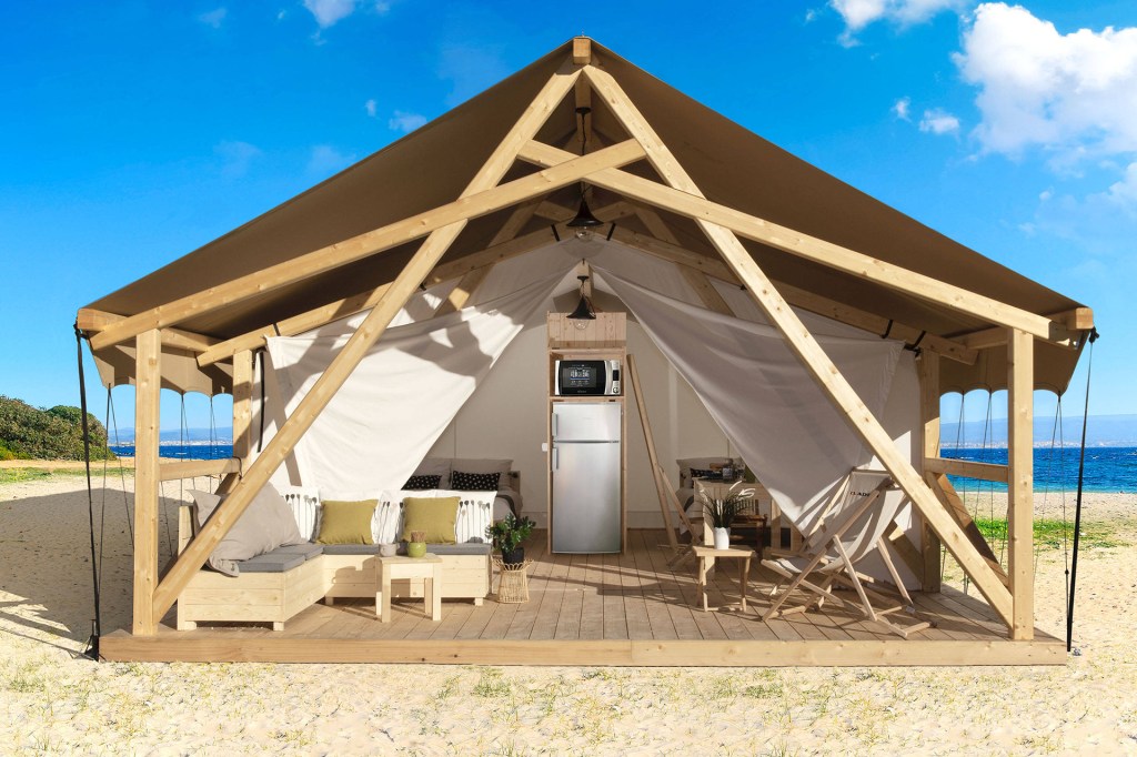 במבחר שלנו חמישה דגמים שונים, כולם עשויים מאותם היסודות, ולכל אחד מהם מידות ואופי ייחודי. הקונסטרוקציה עשויה מקורות עץ מלאות וחזקות, והקורות מחוברות בעזרת חיבורי אלומיניום (מלבד אוהל סנדי). כל המבנה היפהפה הזה מצופה ביריעת בד פלסטית מבודדת חום ועמידה בגשם וכל סערה שתפגוש אותה, מתוחה בצורה יסודית וחזקה בעזרת חבל שעובר בשתי וערב לאורך הדפנות. האוהל מרשים ויפה אך הקסם האמיתי קורה כשנכנסים פנימה. החלק הפנימי של האוהלים עטוף בעוד בד, בד נעים יותר עם חלונות ומאפשר לסגור את האוהל לחלוטין. כל היופי הזה עומד ומקובע על משטח יציב על הקרקע, יכול להיות דק/בטון וכו… האוהלים הם אוהלי קבע ויכולים להחזיק שנים.